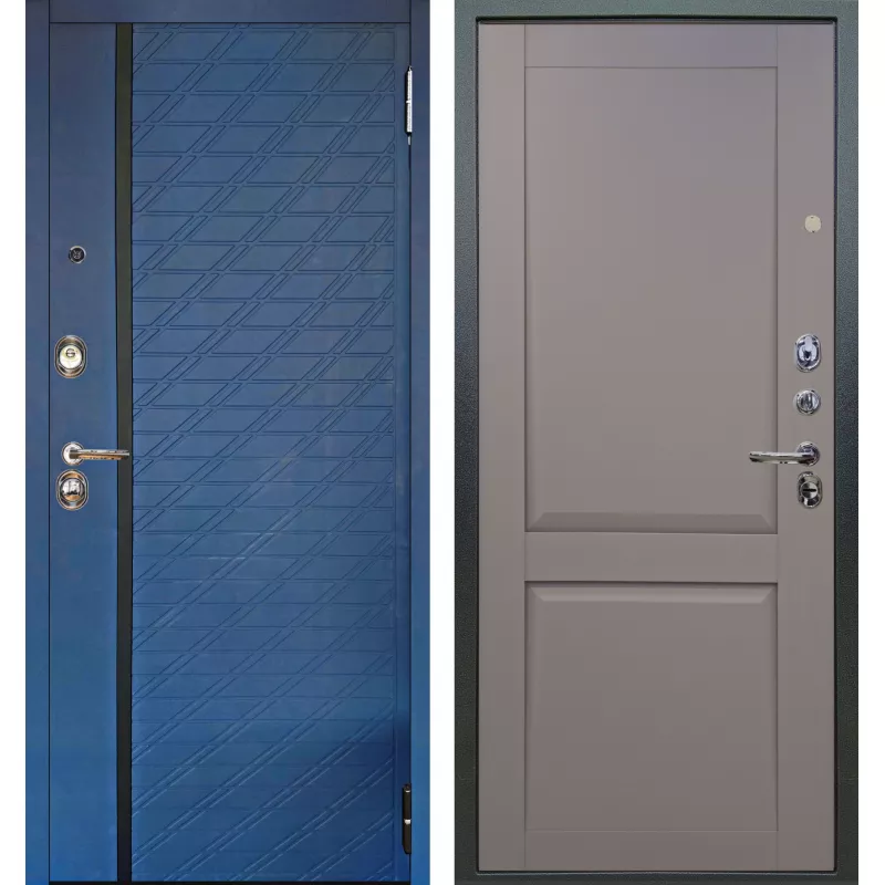 Шумоизоляционная дверь Люкс 3к 2П Тори синий софт внутри тревор серый бархат