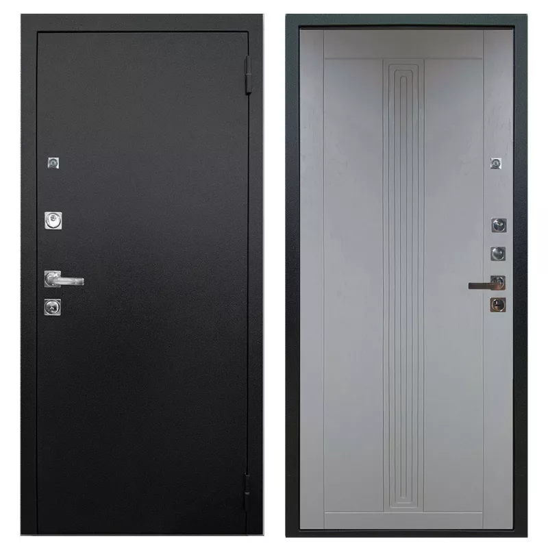 Входная дверь Люкс ПРО 3К Черный шелк | Вертикаль Роял Вуд Серый