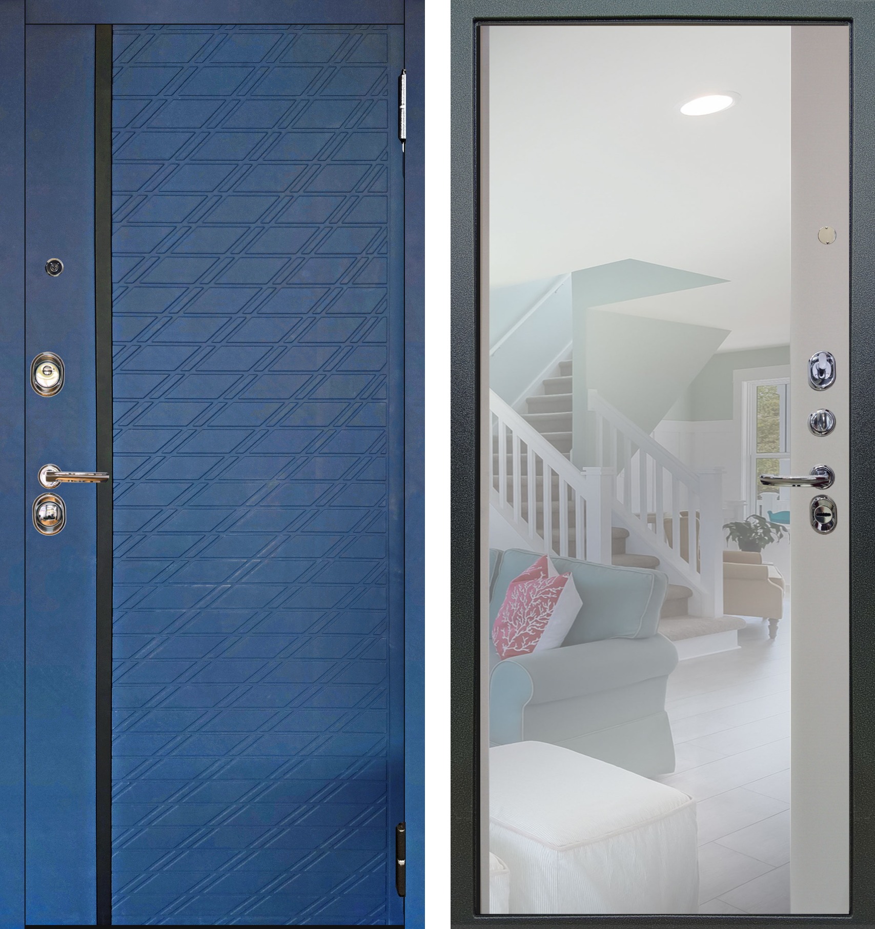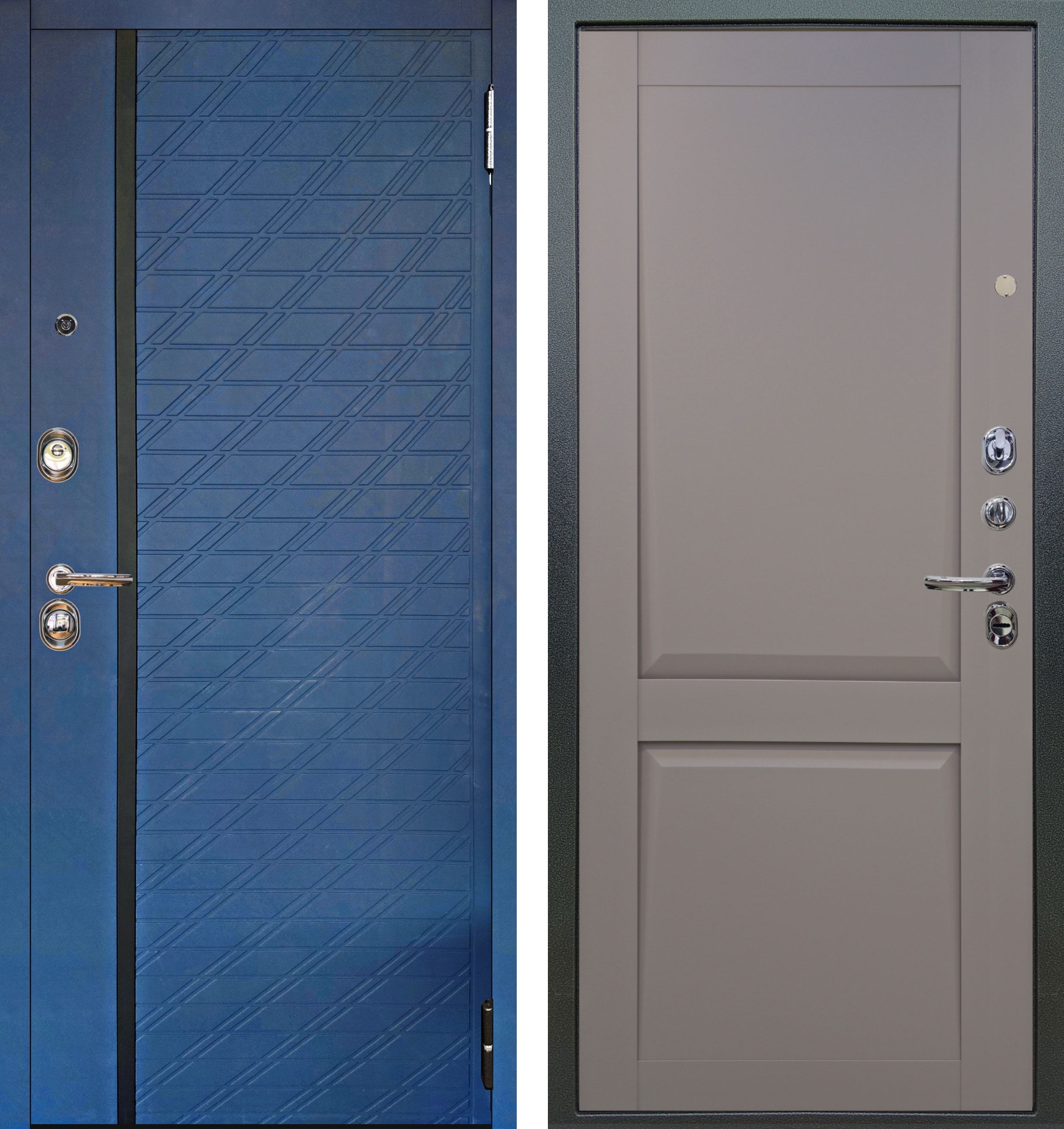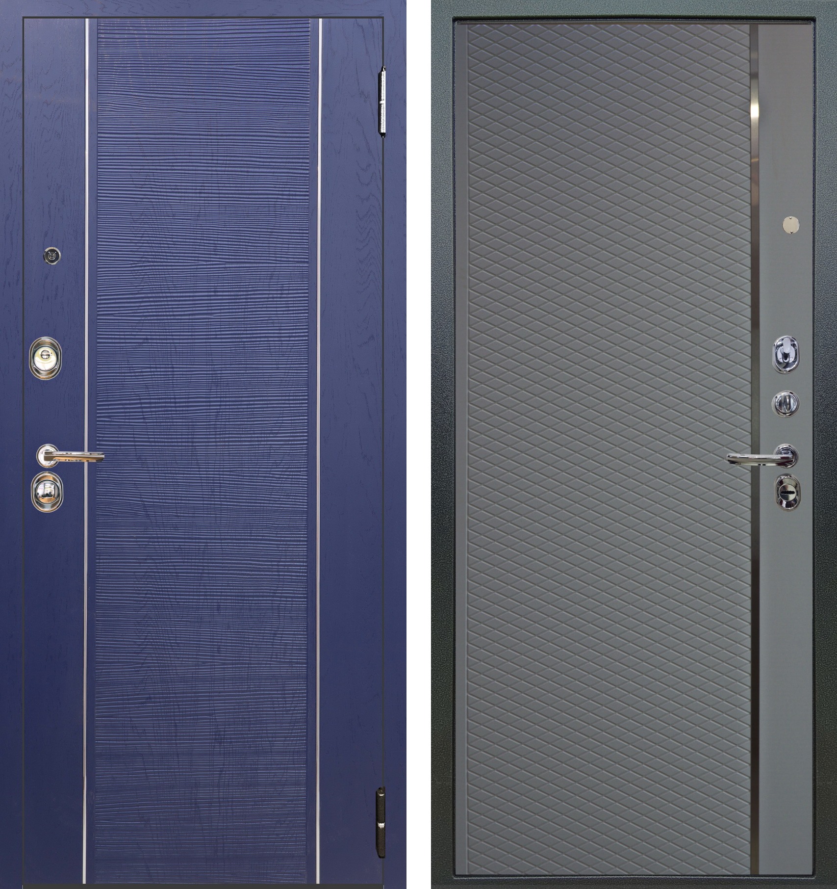 Люкс 3К 2П Тори синий софт внутри тревор серый бархат