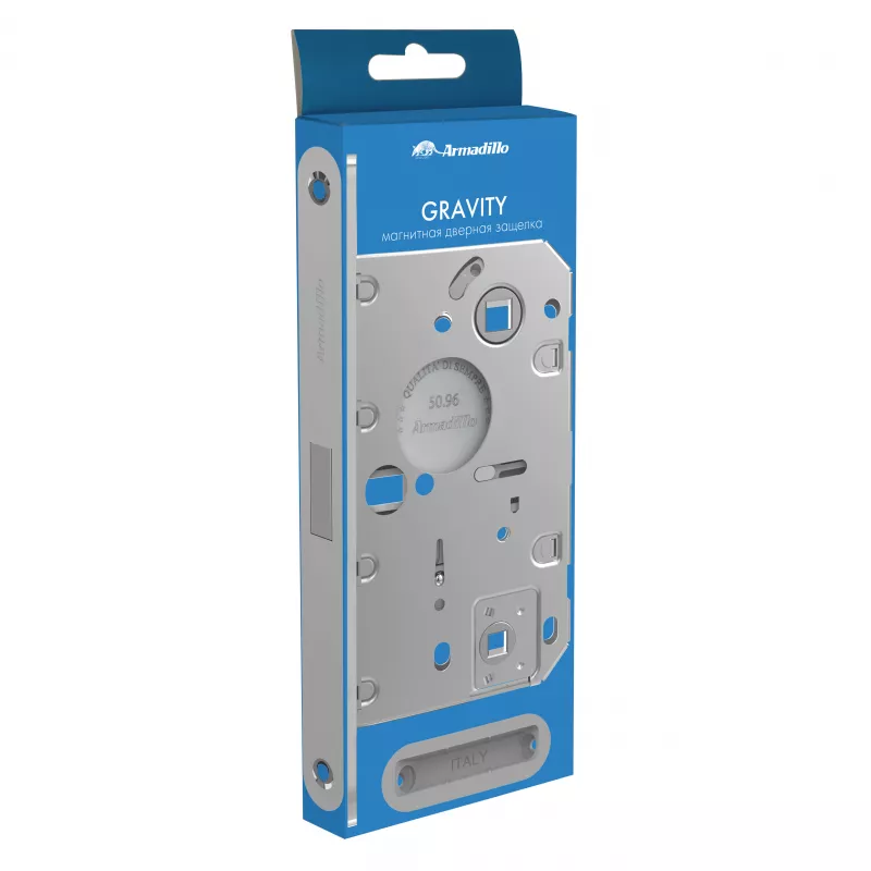 Магнитные защёлки Armadillo GRAVITY - продукт совместной работы российских и итальянских производителей. Бесшумность работы достигается за счет магнитного механизма, срабатывающего только при закрывании. В остальное время защёлка утоплена в полотно. Такая конструкция делает торец более эстетичным и продлевает срок службы самого изделия. Оригинальные итальянские неодимовые магниты препятствуют преждевременному размагничиванию. Полностью гальванизированный корпус защищает от образования коррозии. Уникальный метод полировки лицевой планки гарантирует идеально ровные торцы. Форма ответной планки со скошенными краями обеспечивает отличное сцепление и плавное закрывание. Доступны два размера планки: 190 и 196 мм Саморезы в цвет планки подчеркивают эстетичный вид. Предназначены для установки на деревянные, межкомнатные и сантехнические двери левого и правого открывания с толщиной полотна от 35 мм. Защелки прошли испытания и имеют высший 4 класс надежности (250 000 циклов открывания/закрывания) Гарантия 10 лет.