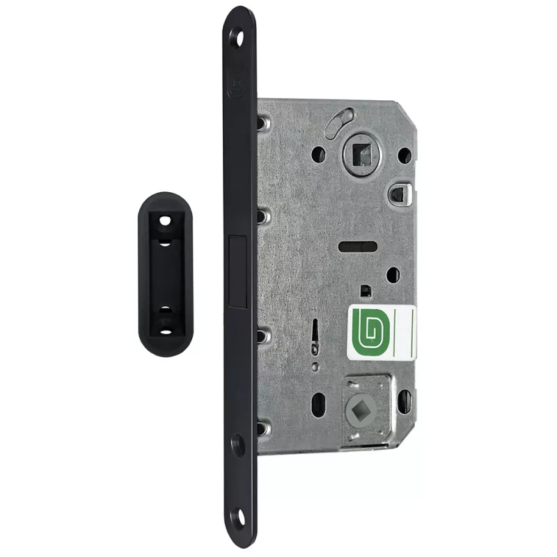 Защелка межкомнатная Soft 1М предназначена для установки в межкомнатные деревянные двери. Подходит для дверей правого и левого открывания (смена направления язычка осуществляется без разборки защелки). Магнитный язычок обеспечивает бесшумное открывание/закрывание двери. Межосевое расстояние 96 мм. Работоспособность 250 000 циклов. Ответная планка входит в комплектацию замка. Цвет: матовый черный.