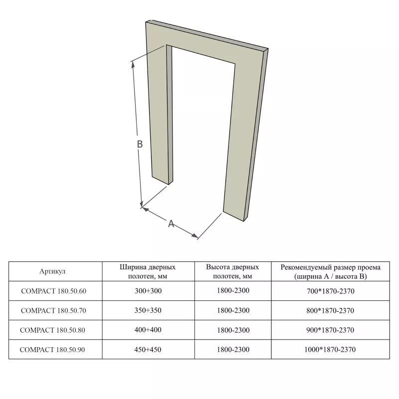 Складная система COMPACT — новое стильное решение для интерьеров с элегантным и лаконичным дизайном. Предназначена для левого, правого и двухдверного открывания. Поворотно-складной механизм размещает двери вдоль стен, создавая угол открывания 180°, что позволяет экономить пространство даже в небольших помещениях. Бесшумное и плавное открывание дает возможность устанавливать двери в гардеробных и детских комнатах. А за счет отсутствия направляющих создается впечатление, что двери парят в воздухе. Складная система COMPACT дает возможность установки в стандартную коробку и полотна стандартных размеров весом до 50 кг, толщиной от 36 до 44 мм. 180- угол открывания системы, 50- вес дверного полотна, 60/70/80/90 - ширина дверного полотна, L/R- левое и правое открывания