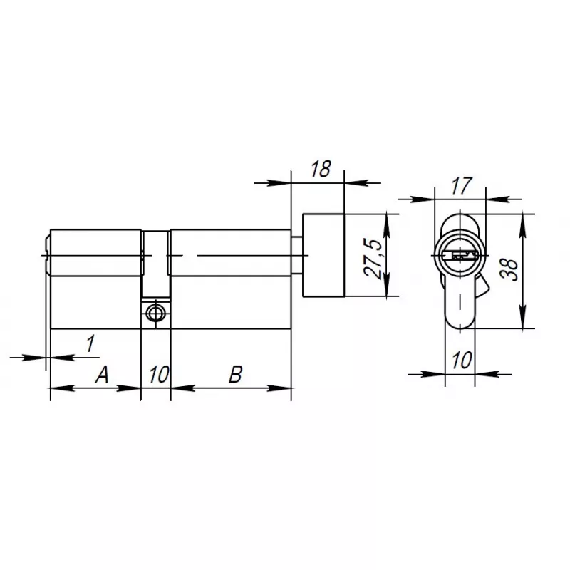 Цилиндровый Ajax (Аякс) механизм (AX202/60) AX2002Knob60 (25+10+25) CP хром с вертушкой